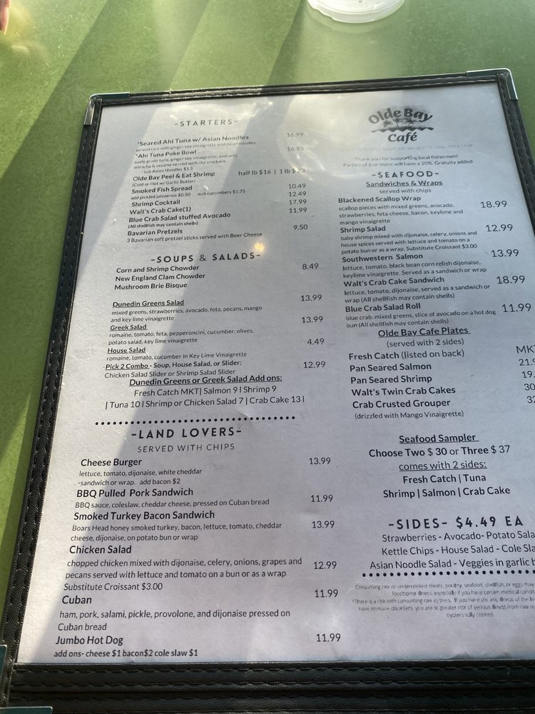Located in Dunedin, FL, Olde Bay Cafe offers a delightful mix of tacos, New American cuisine, and fresh seafood. With outdoor seating and a full bar, this cozy waterfront spot provides a perfect setting to enjoy delicious meals and drinks. Customers rave about the flavorful shrimp tacos, perfectly cooked mahi sandwich, and refreshing drinks. The casual yet vibrant atmosphere along the water makes it a favorite among locals and visitors alike. Enjoy fresh-caught grouper, tasty shrimp tacos with key lime slaw, or a juicy burger wrap while taking in the scenic waterfront views. Friendly staff, great selection of beverages, and reasonable prices make Olde Bay Cafe a must-visit dining destination in Dunedin. Don't miss out on this hidden gem for a memorable dining experience by the water.